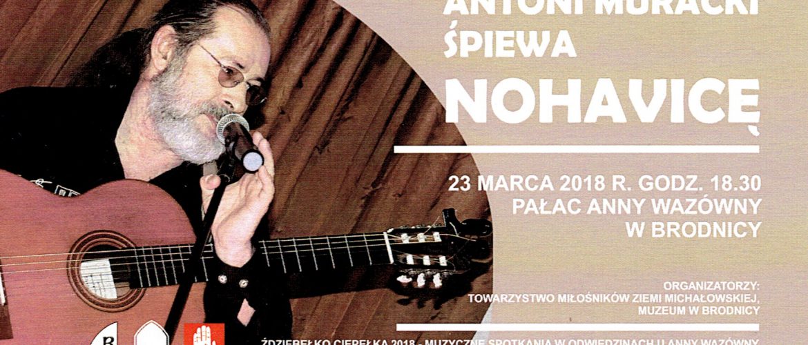 23 marca o godzinie 18:30 w Pałacu Anny Wazówny odbędzie się koncert pt.: „Antoni Muracki śpiewa Nohavicę”. W programie pieśni autorskie oraz twórczość Nahavicy w tłumaczeniach i aranżacji Antoniego Murackiego. Koncert zorganizowany został w ramach Ździebełko Ciepełka 2018 – Muzyczne Spotkania w odwiedzinach u Anny Wazówny.