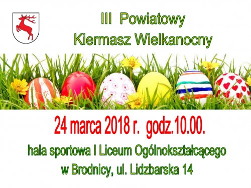 III POWIATOWY KIERMASZ WIELKANOCNY 24 marca o godzinie 10:00 na hali sportowej I LO w Brodnicy rozpocznie się przedświąteczny kiermasz. […] III POWIATOWY KIERMASZ WIELKANOCNY