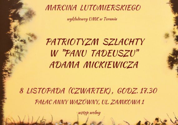 PATRIOTYZM SZLACHTY W „PANU TADEUSZU” Miejska i Powiatowa Biblioteka Publiczna w Brodnicy zaprasza na wykład dr. Marcina Lutomierskiego (wykładowcy UMK […] PATRIOTYZM SZLACHTY W „PANU TADEUSZU”