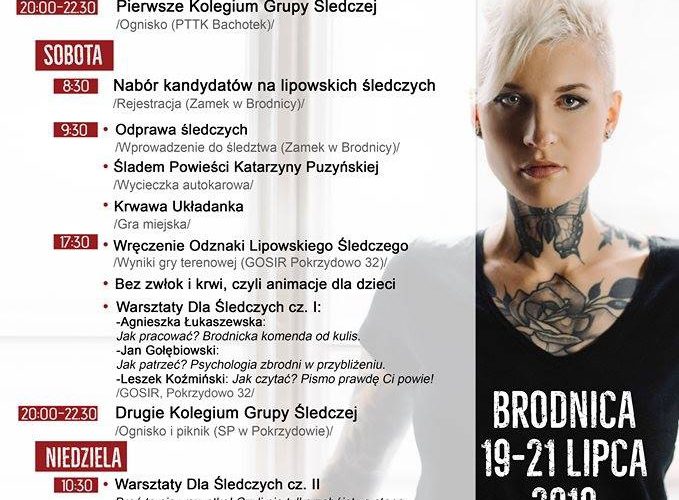 Fani Sagi o Lipowie Katarzyny Puzyńskiej! Od 19 do 21 lipca zjeżdżamy się do rodzinnego miasta Podgórskiego i Kopp na nasze prywatne śledztwo inspirowane 5. i 6 częścią serii! W tym czasie w Brodnicy i okolicach zaroi się od detektywów rozwiązujących zagadki. Czy w Lipowie żyją jeszcze jacykolwiek mieszkańcy? Jak wygląda wampirzy pochówek pod murami cmentarza? Gdzie tak naprawdę zginęła Marylin? To tylko kilka z pytań, które przed uczestnikami stawia śledztwo! Poprzednie edycje Zlotu zgromadziły rzesze fanów z całego kraju. W tym roku zainteresowanie impreza przerosło wszelkie oczekiwania – zapisy zakończyły się już w czerwcu.