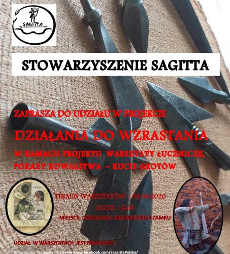 Stowarzyszenie Sagitta uprzejmie informuje, iż w ramach projektu Działania do Wzrastania dnia 08 sierpnia t.j sobota będą miały miejsce warsztaty łucznicze oraz pokaz kowalstwa, które odbędą się na dziedzińcu brodnickiego zamku. Planowane rozpoczęcie wydarzenia o godz. 12:00.