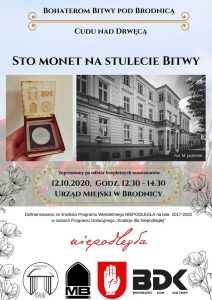 Serdecznie zapraszamy do udziału w grze terenowej „STO MONET NA STULECIE BITWY”! W tym roku mija setna rocznica Bitwy pod Brodnicą, z tej okazji Mincerz Fordoński, specjalnie na dni gry, opracował i przygotował 100 sztuk monet, według autorskiego projektu, upamiętniającego Bitwę pod Brodnicą. Monety są ręcznie wybite i zapakowane w ozdobne pudełka. Pamiątkowe numizmaty są bezpłatne.