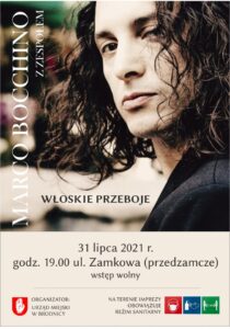 31 lipca 2021 r. zapraszamy na włoski wieczór w wykonaniu Marco Bocchino. Włoskie przeboje w wykonaniu artysty z Włoch rozpoczną się o godzinie 19.00 na brodnickim przedzamczu. Wstęp wolny. Zapraszamy.