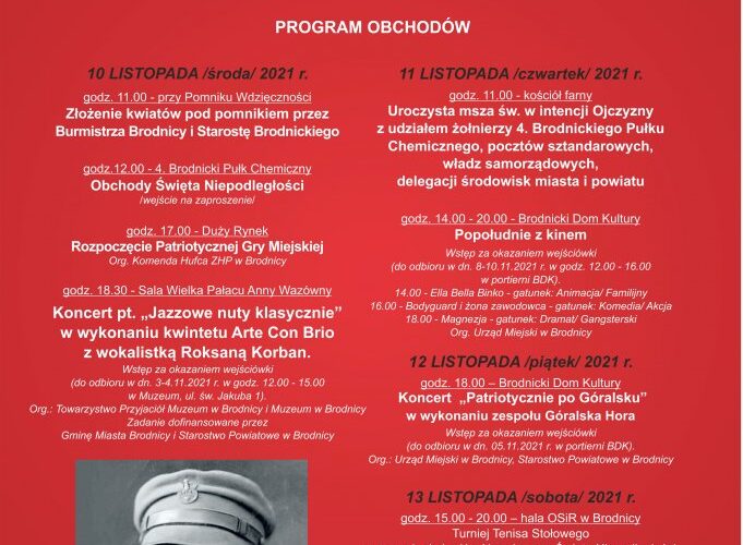 10 – 14 LISTOPAD – OBCHODY NARODOWEGO ŚWIĘTA NIEPODLEGŁOŚCI W BRODNICY