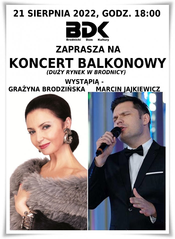 Do koncertów balkonowych nie trzeba już nikogo w Brodnicy przekonywać. Pokochaliście je Państwo miłością odwzajemnioną, bo artyści pokochali brodnicką publiczność. W tym roku, na balkonach Szkoły języków obcych Vogelschule Brodnica i państwa Badaczewskich, wystąpią: Pierwsza Dama Polskiej Sceny Muzycznej, Grażyna Brodzińska oraz Marcin Jajkiewicz.