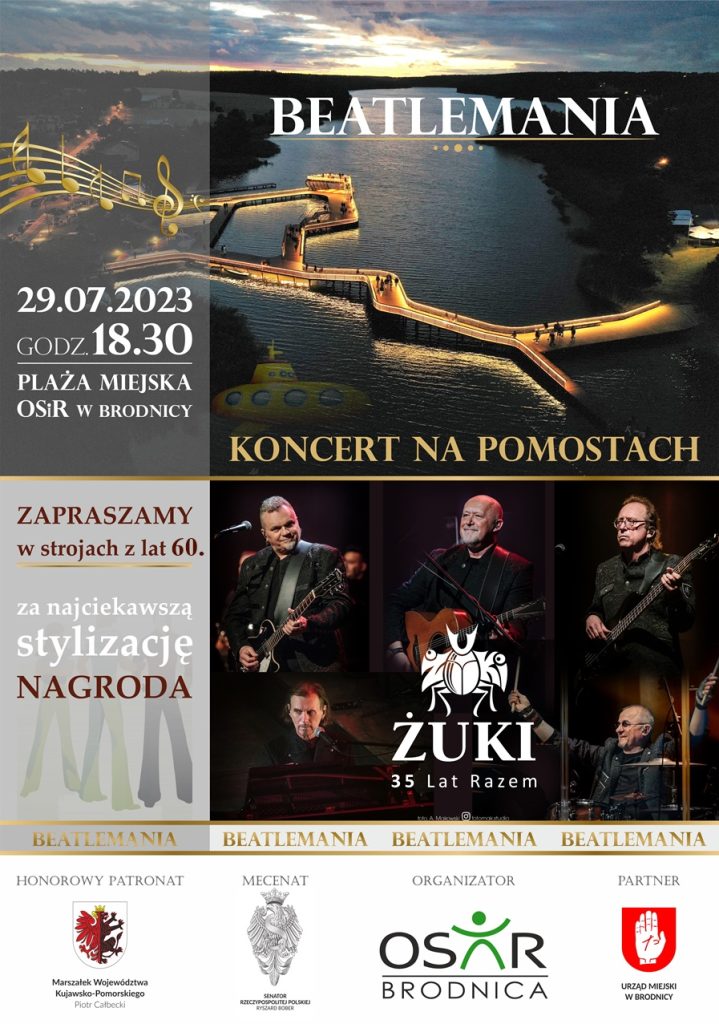 W tym roku Brodnicę opanowała prawdziwa beatlemania! Po koncercie „THE BEATLES SYMFONICZNIE”, w wykonaniu artystów z orkiestry Alla Viena przyszedł czas na naszą regionalną gwiazdę, błyszczącą na scenie niezmiennie od 35 lat – bydgoski zespół ŻUKI!