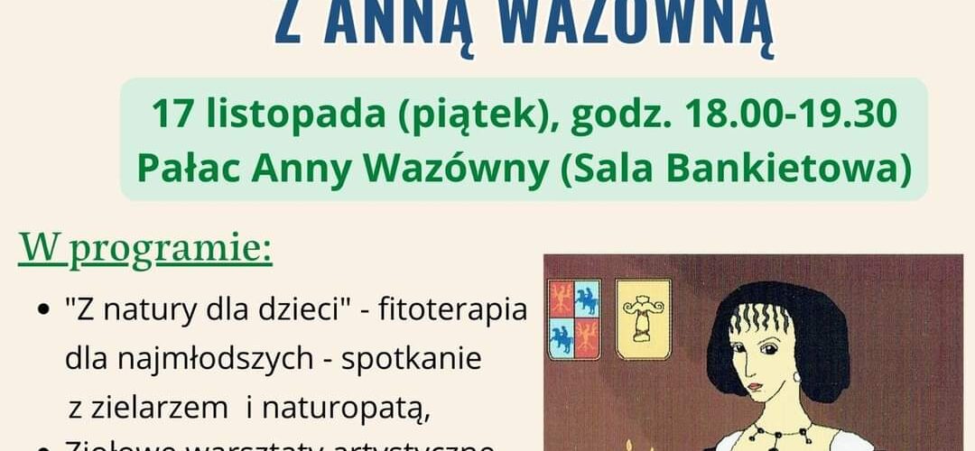 W programie: „Z natury dla dzieci” – fitoterapia dla najmłodszych – spotkanie z zielarzemi naturopatą, ziołowe warsztaty artystyczne, wystawa “Oblicza Anny Wazówny”, tradycyjne parzenie ziołowej herbaty, oraz słodki poczęstunek dla uczestników zajęć.