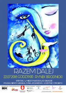 22.07.2018r. godz. 19:00 – Duży Rynek w Brodnicy – spektakl teatralno- cyrkowy Razem – dalej, Patronat Honorowy: Jarosław Radacz – Burmistrz Brodnicy.