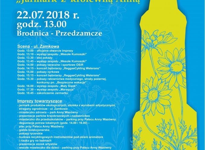 22 lipca 2018 roku po raz trzynasty odbędzie się wydarzenie proekologiczne skupiające tłumy zwolenników zdrowej żywności. Tego dnia na przedzamczu w Brodnicy od godziny 13.00 do godziny 19.00 odbywać się będzie XIII Międzynarodowy Jarmark Ekologiczny „Jarmark z królewną Anną”. Jak co roku podczas imprezy czekać będzie moc atrakcji. Stanie kilkadziesiąt stoisk z żywnością ekologiczną, wyrobami artystycznymi i roślinami ozdobnymi.