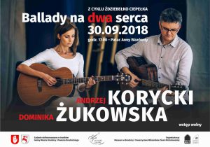 Muzeum w Brodnicy i Towarzystwo Miłośników Ziemi Michałowskiej mają zaszczyt zaprosić na koncert pt.: „Ballady na dwa serca”, który odbędzie się 30 września o godz. 17:00 w Pałacu Anny Wazówny. Na scenie zaprezentuje się duet: Andrzej Korycki i Dominika Żukowska. Wstęp wolny.
