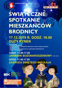 Natomiast od godziny 10:00 do 17:00 trwać będzie Jarmark Bożonarodzeniowy organizowany przez Brodnicki Dom Kultury. Zapraszamy.