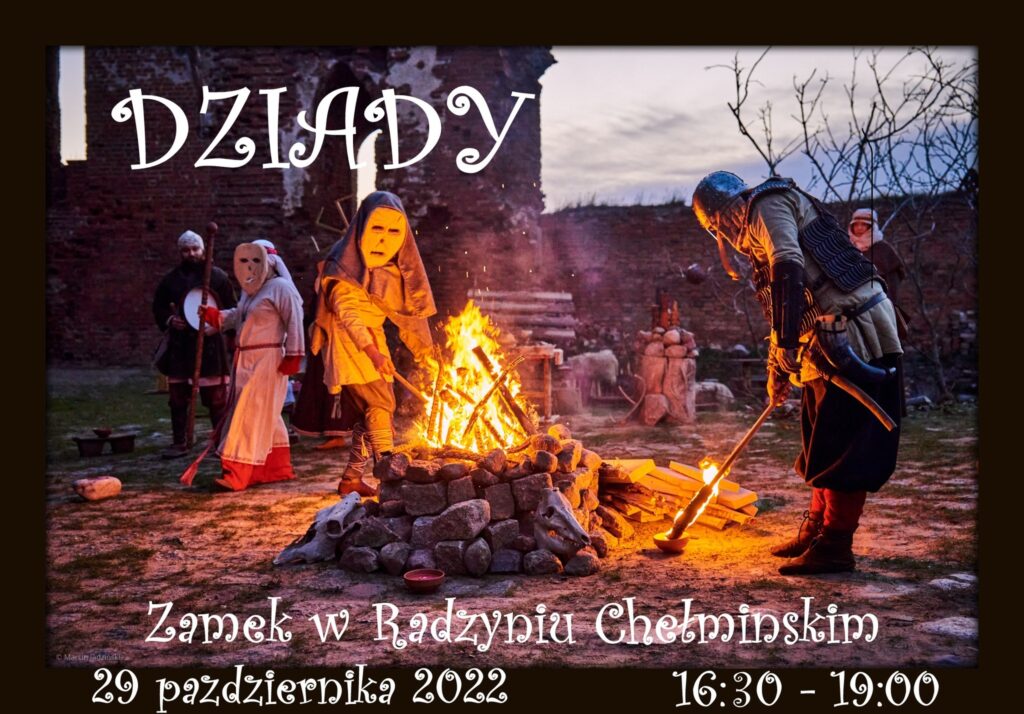 Po warsztatach koło godziny 18:00 na dziedzińcu zamkowym odbędzie się INSCENIZACJA OBRZĘDU DZIADÓW. Jak i w zeszłym roku tak i w tym nie zabraknie miejsca oraz czasu na wspólny poczęstunek przy cieple zamkowego ogniska.