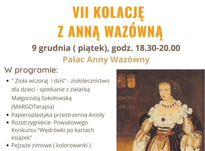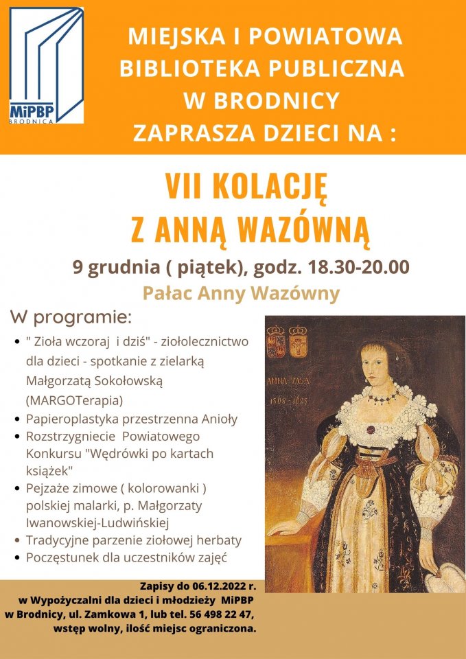 Miejska i Powiatowa Biblioteka Publiczna im. Ignacego Łyskowskiego w Brodnicy zaprasza dzieci na: VII Kolację z Anną Wazówną.