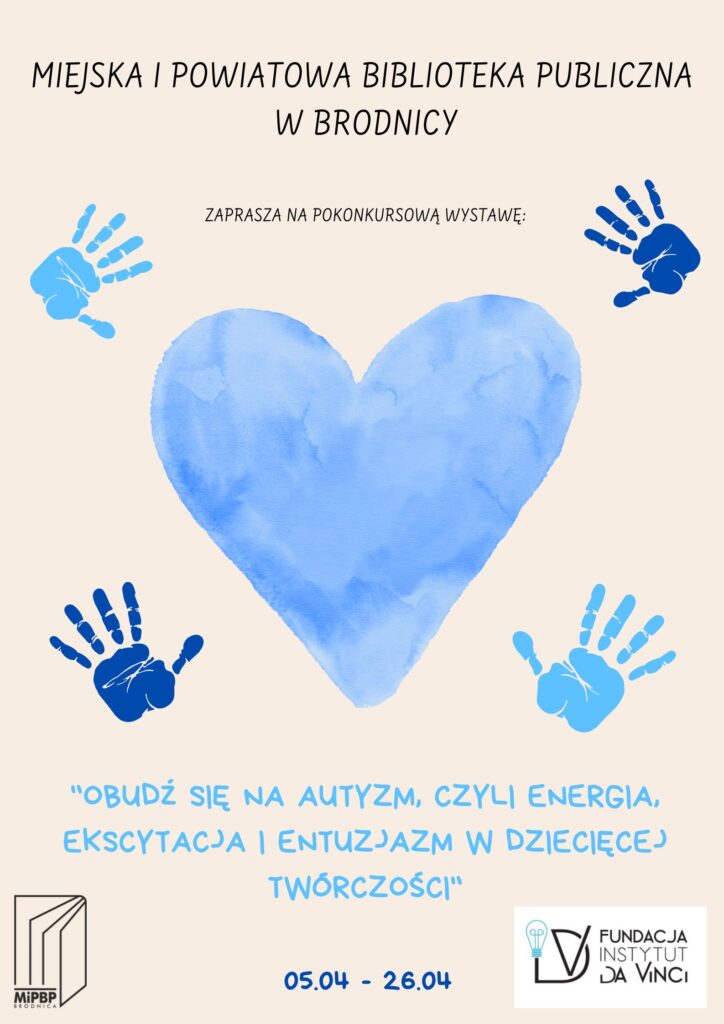 Miejska i Powiatowa Biblioteka Publiczna w Brodnicy zaprasza na pokonkursową wystawę ”Obudź się na autyzm, czyli energia, ekscytacja i entuzjazm w dziecięcej twórczości”. Ekspozycja jest wynikiem konkursu zorganizowanego przez Fundację Instytut Da Vinci pod patronatem Starosty Brodnickiego. Celem konkursu było kształtowanie tolerancyjnych postaw oraz promowanie wiedzy na temat zaburzeń ze spektrum autyzmu. Nagrodzone i najciekawsze prace będzie można obejrzeć w holu w godzinach pracy biblioteki od 5 do 26 kwietnia.