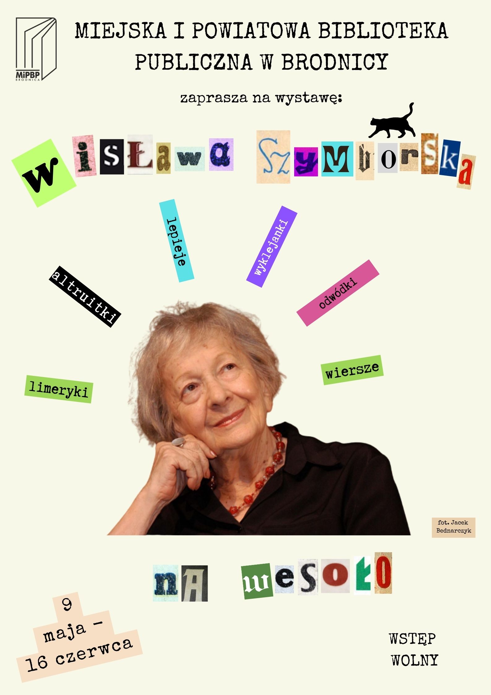 Rok 2023 został ogłoszony „Rokiem Wisławy Szymborskiej”, w związku z setną rocznicą urodzin noblistki Miejska i Powiatowa Biblioteka Publiczna w Brodnicy przygotowała wystawę i prezentację „Wisława Szymborska – na wesoło”. Od 9 maja do 16 czerwca ekspozycję można oglądać w godzinach pracy biblioteki, wstęp wolny. Zainteresowanych prezentacją i oprowadzeniem po wystawie należy zgłaszać pod nr tel. 698491035. Zapraszamy.